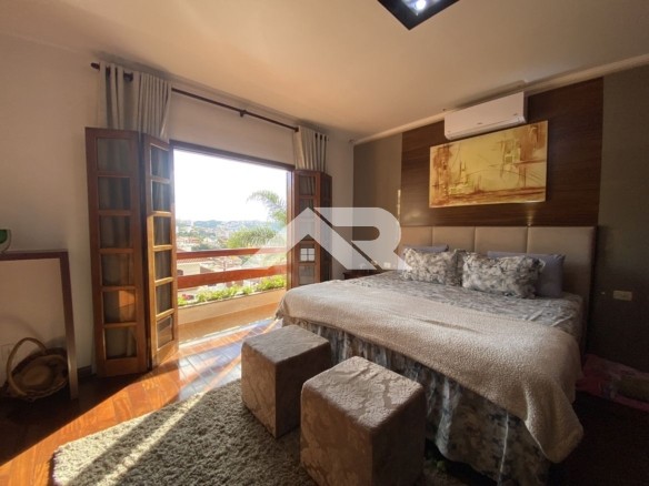Com uma vista privilegiada da cidade, esta casa espaçosa e aconchegante oferece amplas possibilidades: são dois ambientes de sala, com lareira e adega de vinhos. Os detalhes em madeira trazem uma sofisticação única ao espaço. A copa conta com um jardim de inverno e lavabo, além de um ambiente adicional que pode ser usado como sala de TV ou escritório Home Office.