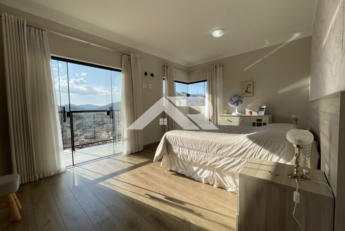 No bairro Vivaldi Leite Ribeiro, esta casa de 350m² de construção é o equilíbrio perfeito entre luxo e conforto. Com 3 suítes amplas com closet e planejados, além de quartos para hóspedes, ela oferece espaço e funcionalidade para toda a família. A cozinha em conceito aberto e as salas com pé direito alto e sacada tornam o ambiente acolhedor e elegante, complementado por uma vista incrível para a Serra do Cristo.