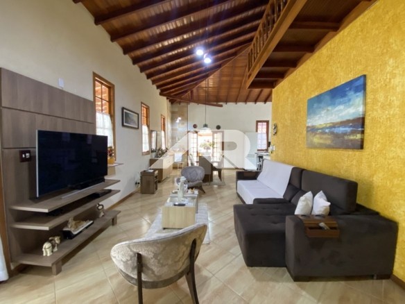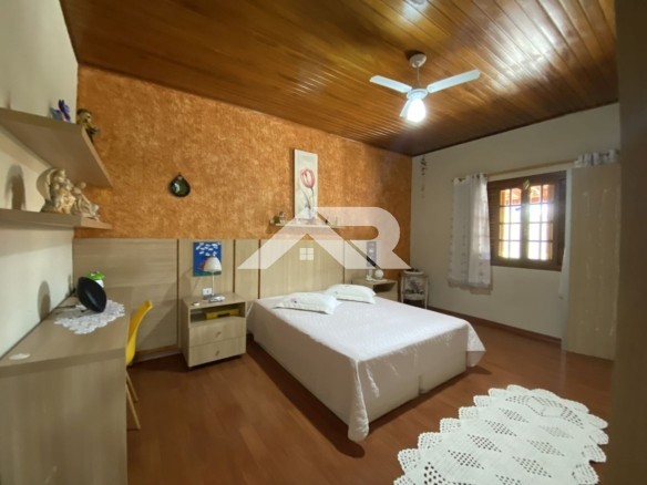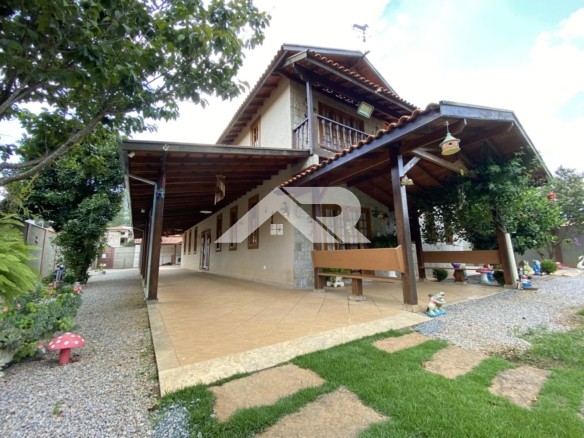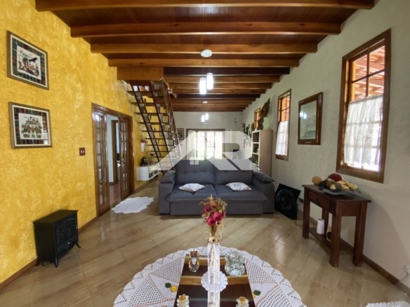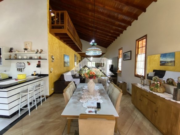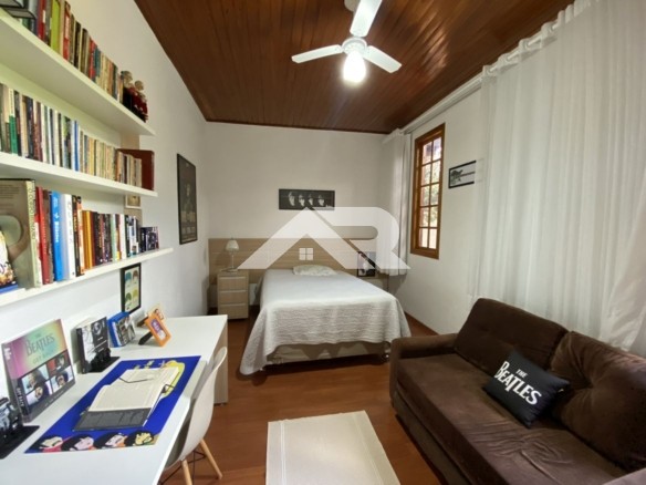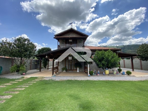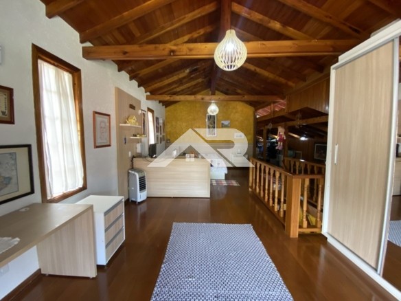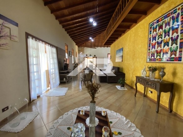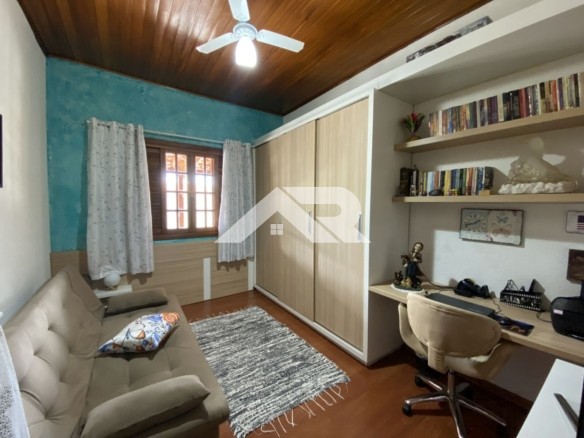 Apesar de apresentar fachada estilo sobrado , a casa é praticamente plana já que a parte de cima oferece um escritório que atualmente está como dormitório, ainda tem uma linda vista para as serras.