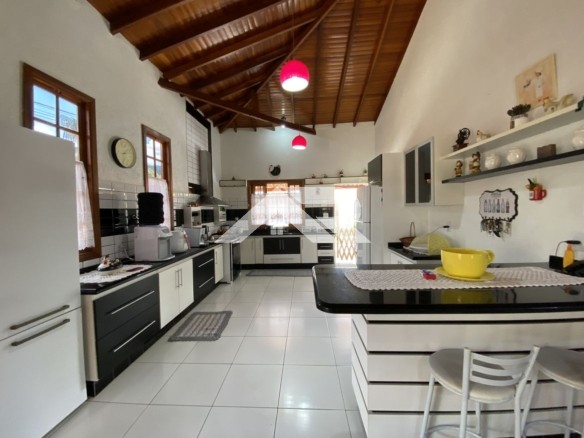 A casa tem um pé direito duplo com uma excelente integração entre sala, copa e cozinha. Separado por uma porta, a área privativa dos dormitórios oferece um banheiro que dá suporte para 2 dormitórios, e ao final do corredor uma espaçosa suíte com hidromassagem.